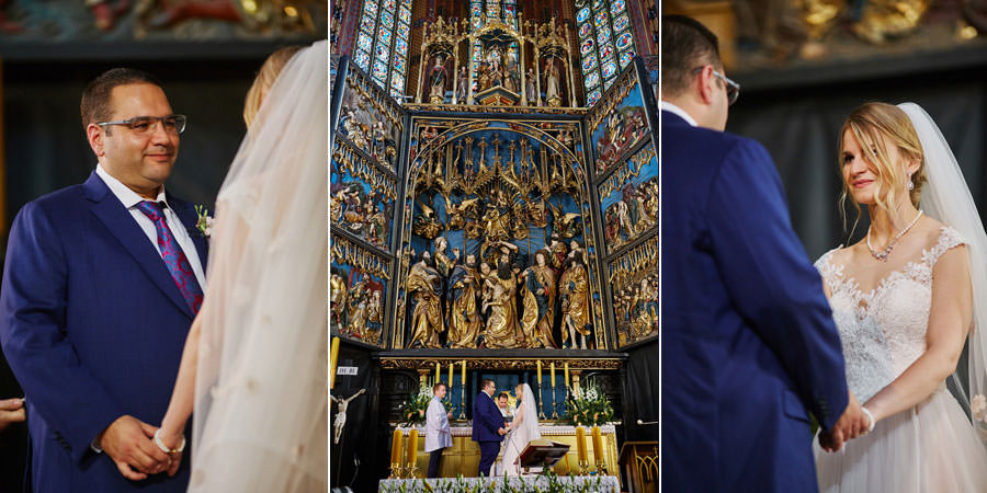 Kasia i Michael ślubowali tego dnia dwukrotnie. Po pierwsze w Kościele Mariackim, po drugie na tarasie Hotelu Starego, pod chupą, czyli pod baldachimem ślubnym, symbolizującym nowy dom nowożeńców. Podczas ceremonii żydowskiej wypowiedziana została poruszająca przysięga, którą Kasia i Michael przygotowali sami. Warto zwrócić uwagę na jej słowa: pokarm to coś, co daje nam życie, nie tylko to cielesne, ale i duchowe. Dlatego: „Obiecuję, że będę cię karmił…” – zaczął on. „…obiecuję zawsze mówić ci, gdy będę głodna” – zakończyła ona. Następnie miało miejsce uroczyste podpisanie ketuby, tradycyjnego dokumentu małżeńskiego w języku aramejskim. Potem z kolei tłuczenie kieliszków butem, przełożenie obrączek z ręki prawej na lewą. Na koniec – moment zespolenia – zapalenie dwóch świec symbolizujących odrębność nowożeńców. Od nich zapalono trzecią świecę – jedności duchowej i cielesnej. Miała ona kształt wulkanu, w myśl niezwykłego wyznania, które jest siłą napędową ich miłości: „I lava you”.