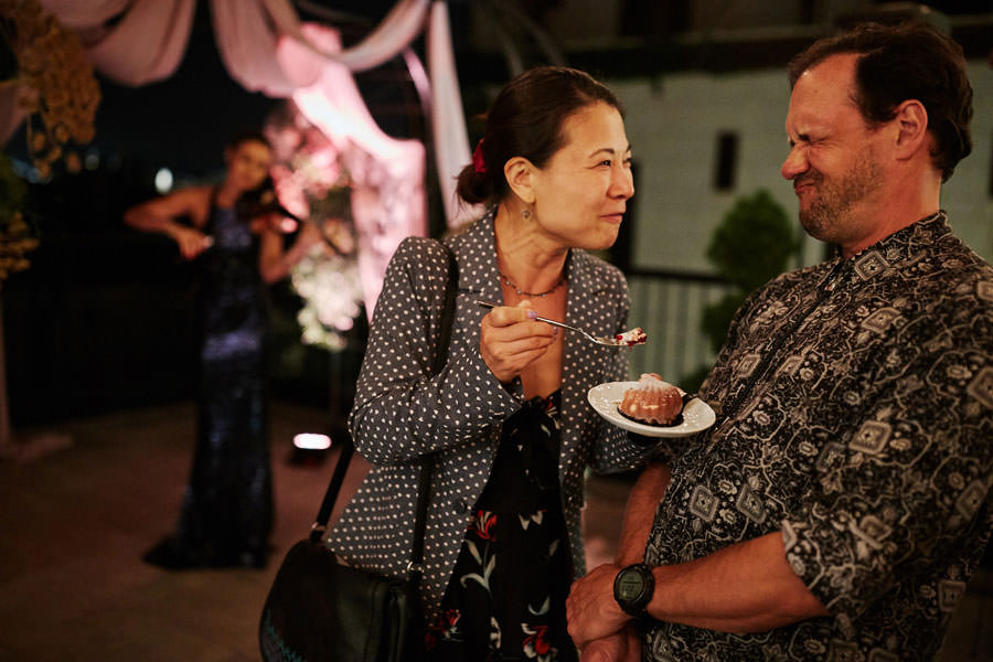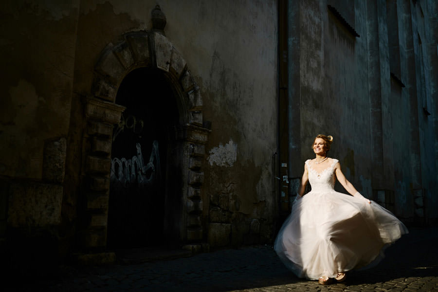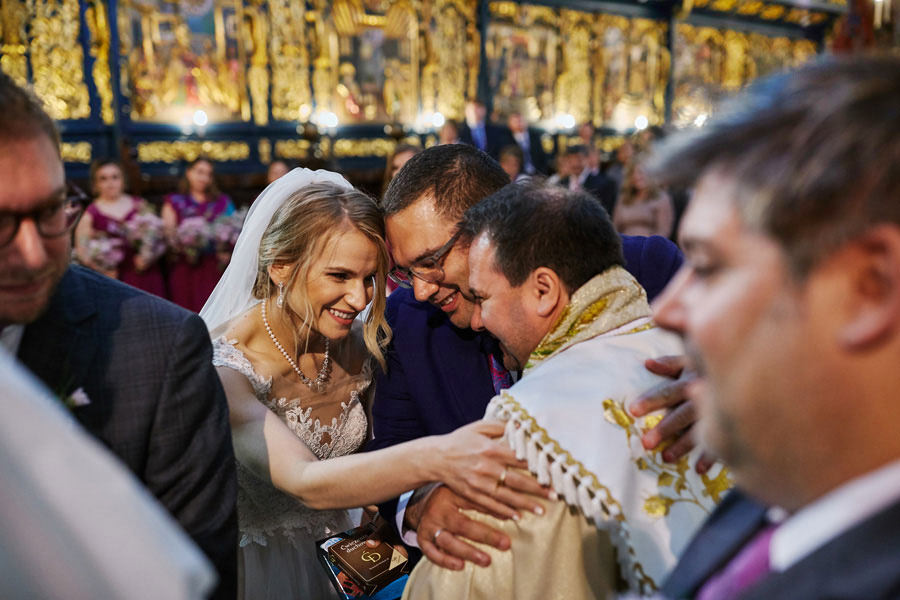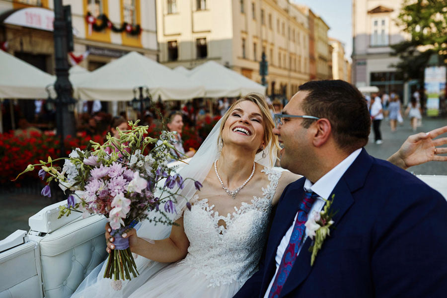 Podsumowując: wesele było niezwykłe, podobnie jak cały ten dzień. Pełne wzruszeń, szalonych tańców, czułej bliskości i niesamowitym finałem na tarasie hotelu. Niesamowitym ze względu na przepiękny koncert skrzypcowy, a także ze względu fantastyczne oświetlenie. Tam właśnie para młoda pokazała gościom film z tego dnia, który zawierał niespodziankę – wizytę w Starbucks Coffee – czyli w miejscu, gdzie K i M się poznali. Następnie był tort, a także oczepiny, wiele inspirujących rozmów z ludźmi, których już znaliśmy. Było to bowiem już nasze trzecie spotkanie z parą młodą, drugie z ich gośćmi. Tymczasem jeszcze kolejny dzień miał być również naszą wspólną przygodą.