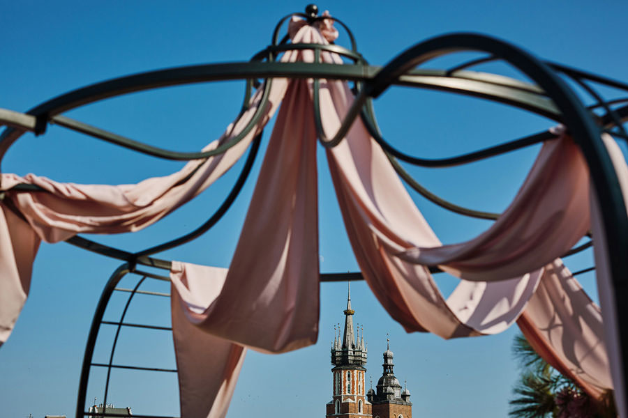 Wesele w Hotelu Starym z przewodnim motywem Japonii skupiało w sobie największe pasje nowożeńców. Zarówno podróżnicze, czy estetyczne, jak i kulturowe, i kulinarne. Znalazła tu odzwierciedlenie ich miłość do herbaty, dlatego właśnie proces jej parzenia i picia zastąpił pierwszy weselny toast. Godna uwagi jest tu praca dekoratorów. Zdecydowanie postarali się, by Hotel Stary na chwilę faktycznie przemienił się w kraj kwitnącej wiśni. Przede wszystkim papeteria i liternictwo nawiązywało do stylistyki pisma japońskiego. Podobnie jak dekoracje światłem na ścianach – przedstawiające drzewa i inne motywy wzięte ze sztuki japońskiej.