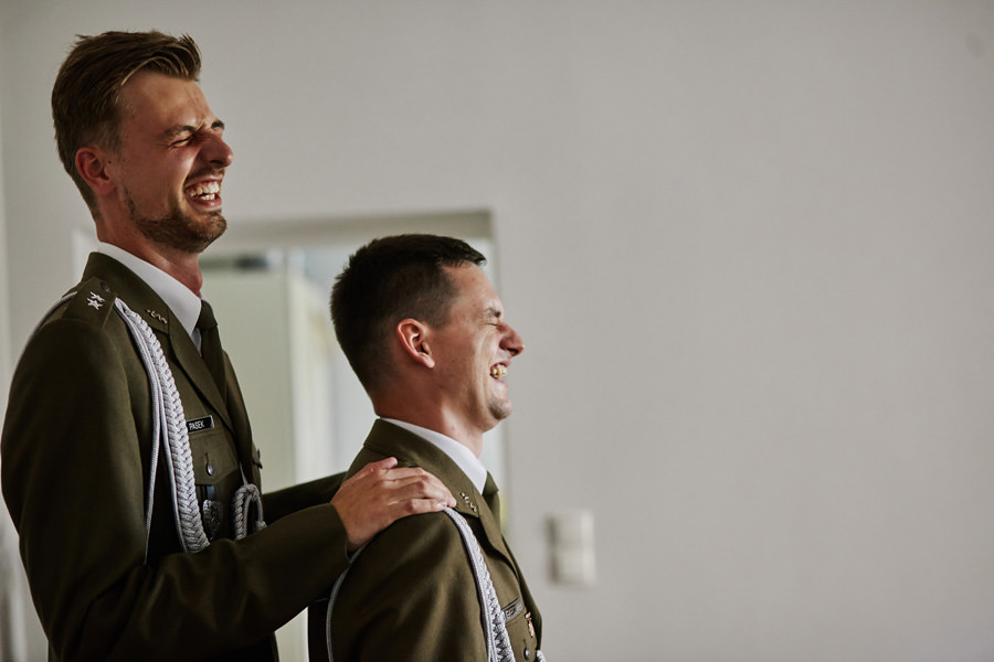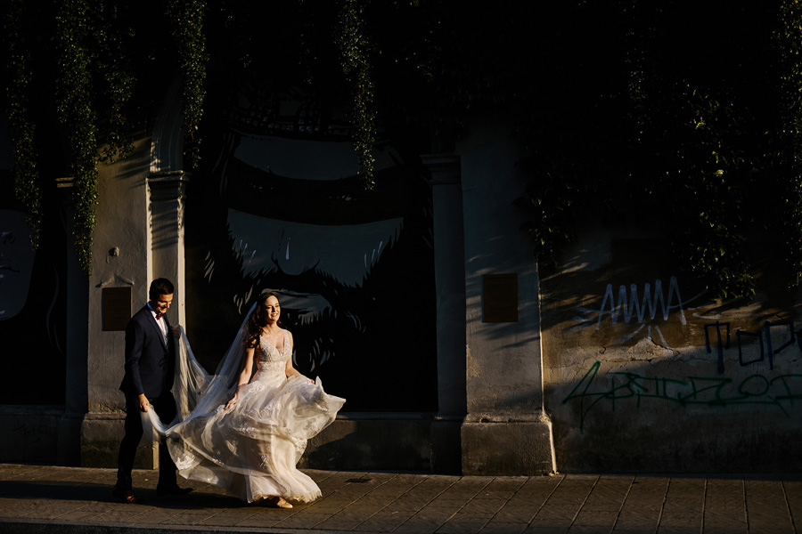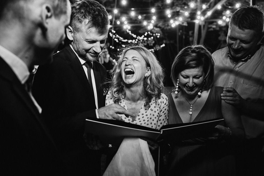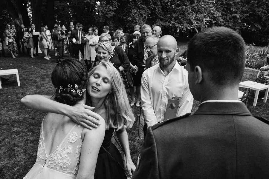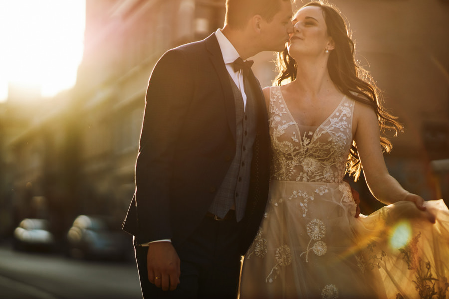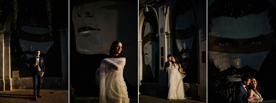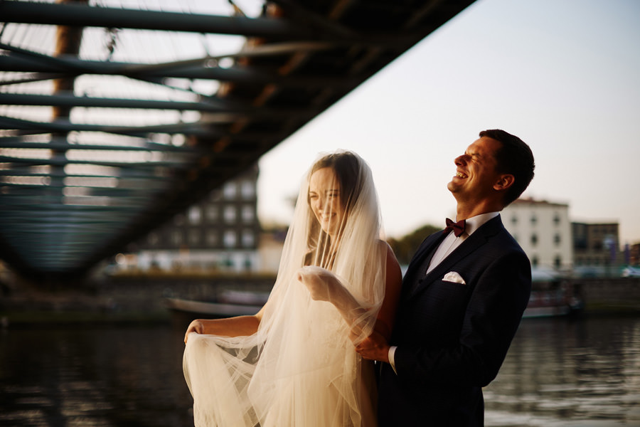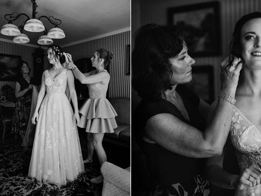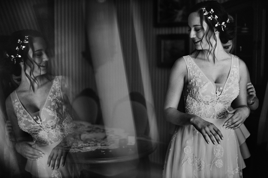 Oczywiście wszystko miało swój klasyczny porządek. Zatem najpierw przygotowania, które ciągle w parach młodych budzą pewien niepokój. Czy nie będzie zbytniego chaosu, czy nie zje ich stres, czy okażą się wystarczająco ciekawi? Z perspektywy fotografa ślubnego, którego ambicją jest reportaż ślubny, nie ma czegoś takiego jak zbyt duży chaos. W chaosie tkwi potencjał czegoś niestandardowego. Stres? To akurat wykluczone, bo w ilość ślubno-weselnych anegdot, które ma w zanadrzu każdy doświadczony fotograf, zapewne wyeliminuje wszelki stres ;). A co do ostatniego pytania – fenomen tej pracy polega na tym, że choć śluby i wesela są do siebie podobne, to jednak Wy – czyli główni bohaterowie tych wydarzeń, jesteście zupełnie inni. To jest to, co podkręca naszą kreatywność. Wasza inność, sposób bycia, temperament :).