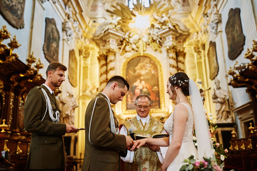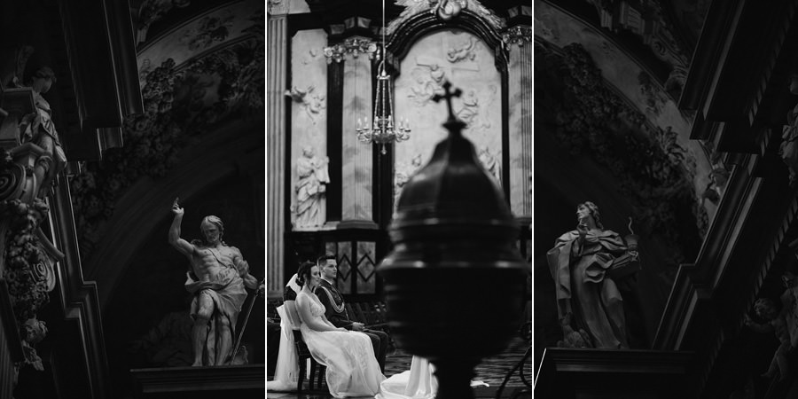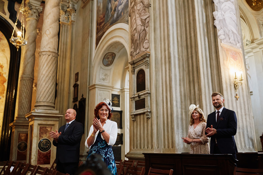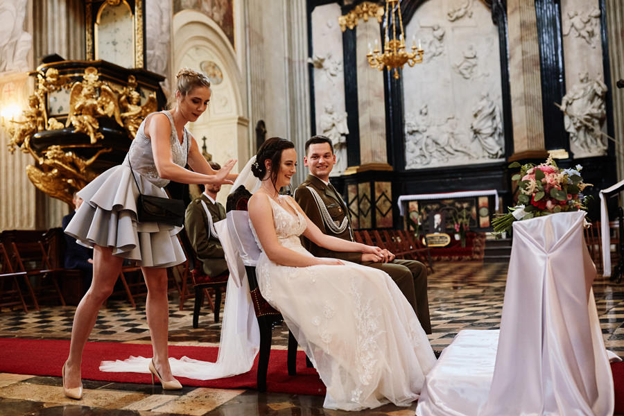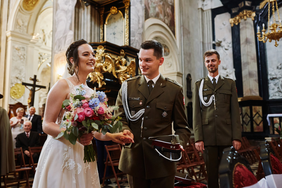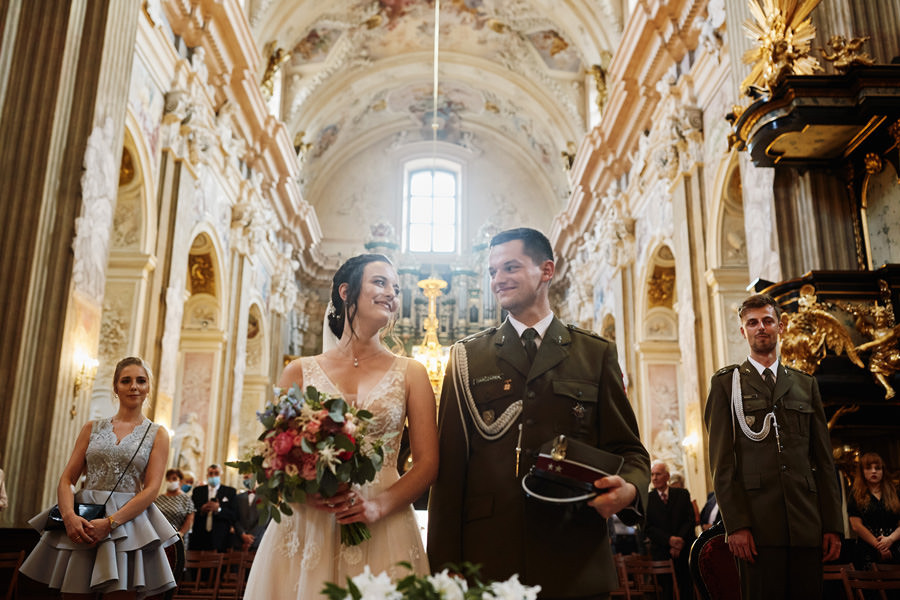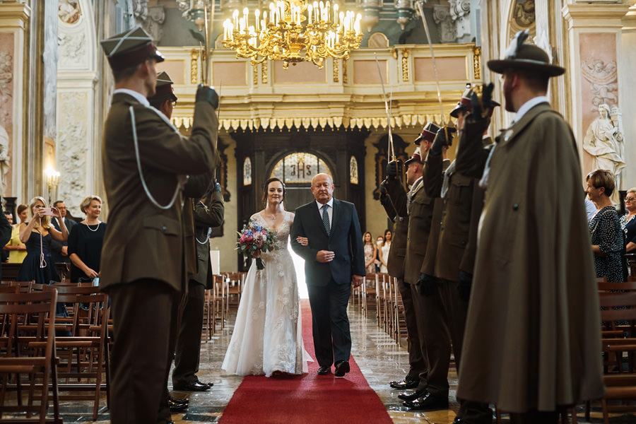 Na miejsce swojego ślubu Karolina i Michał wybrali jeden z najpiękniejszych kościołów w Krakowie, czyli Kolegiatę św. Anny. Wybór idealny – nie tylko ze względu na to, że są tu wspaniali księża i ceremonia ślubna wiele na tym zyskuje. Również ze względu na piękno architektury i na spójność wizualną całego tego wielkiego dnia, która ma swoje przełożenie na zdjęcia. Oczywiście nie mamy też nic przeciwko tradycji, która mówi, że ceremonia zaślubin odbywa się w parafii panny młodej. Niemniej jednak w dzisiejszych czasach możemy wybierać. Warto więc pójść tam, gdzie zostaniemy serdecznie przyjęci, gdzie usłyszymy mądre i wartościowe słowa i gdzie względy estetyczne mogą być wartością dodaną.