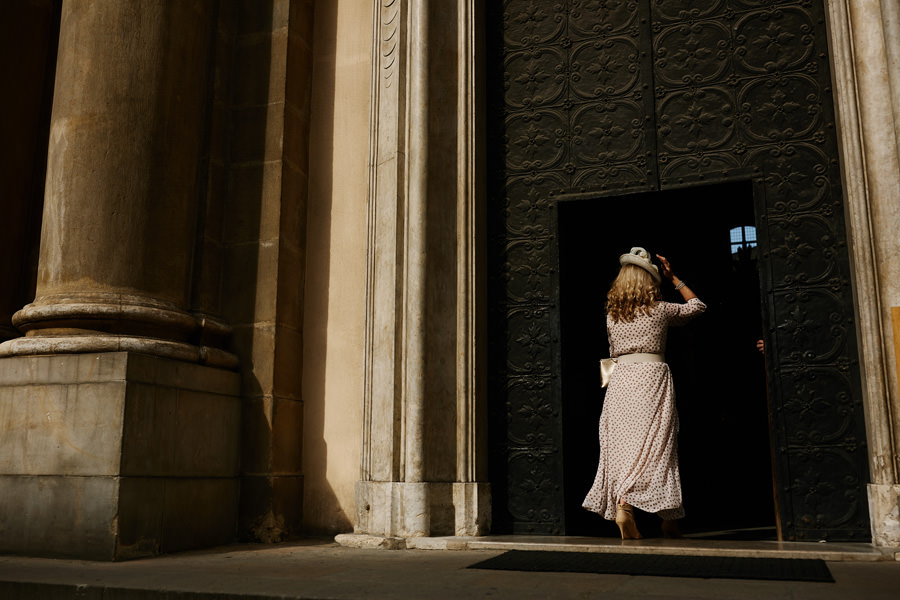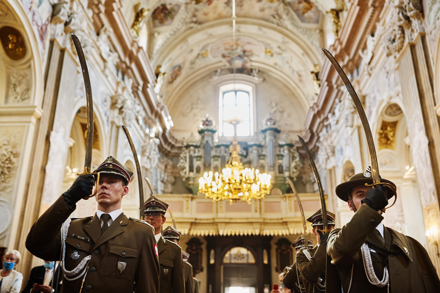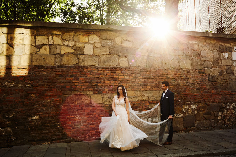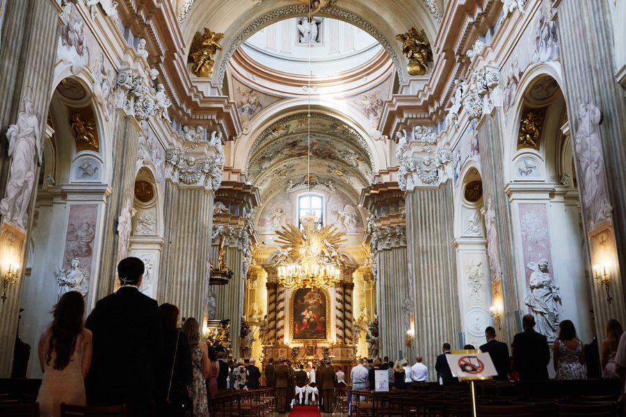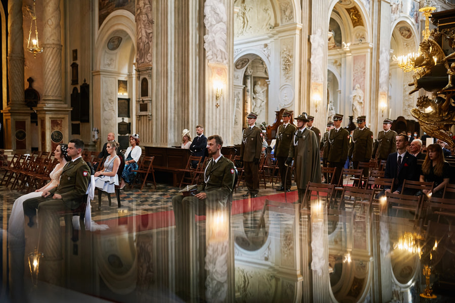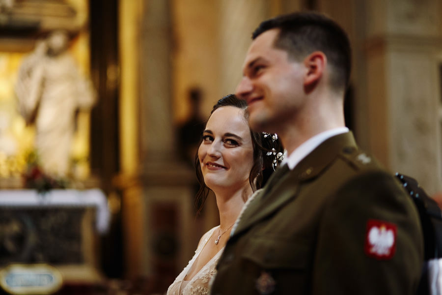 Na miejsce swojego ślubu Karolina i Michał wybrali jeden z najpiękniejszych kościołów w Krakowie, czyli Kolegiatę św. Anny. Wybór idealny – nie tylko ze względu na to, że są tu wspaniali księża i ceremonia ślubna wiele na tym zyskuje. Również ze względu na piękno architektury i na spójność wizualną całego tego wielkiego dnia, która ma swoje przełożenie na zdjęcia. Oczywiście nie mamy też nic przeciwko tradycji, która mówi, że ceremonia zaślubin odbywa się w parafii panny młodej. Niemniej jednak w dzisiejszych czasach możemy wybierać. Warto więc pójść tam, gdzie zostaniemy serdecznie przyjęci, gdzie usłyszymy mądre i wartościowe słowa i gdzie względy estetyczne mogą być wartością dodaną.