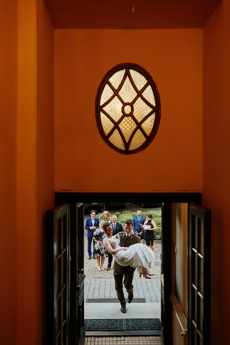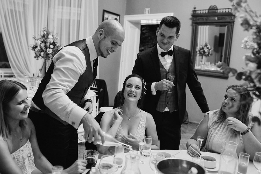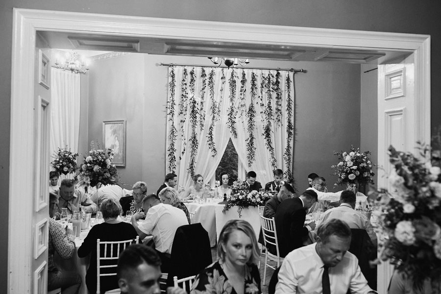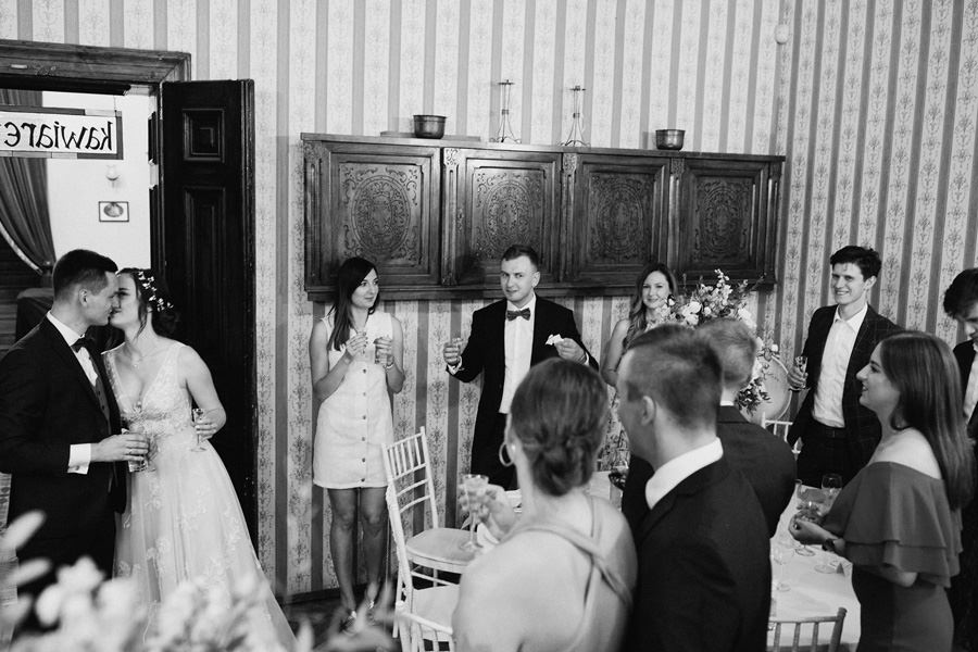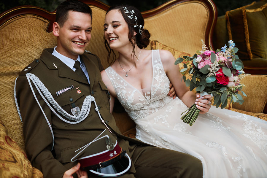 Decyzja o tym, gdzie urządzić wesele, nie jest łatwa i wpływa na nią wiele czynników. Na czoło wysuwają się względy logistyczne. Miejsce wesela powinno być ulokowane w miarę blisko miejsca ceremonii, by dostanie się do niego nie pochłonęło zbyt dużo czasu. Drugi czynnik to z całą pewnością ilość gości, których planujemy zaprosić. Moje doświadczenie pokazuje, że najbardziej urokliwe miejsca na wesele są jednocześnie raczej kameralne. Więc jeśli mamy w planach wesele na około 100 osób, wówczas małopolskie dworki i pałace stoją przed nami otworem. Karolina i Michał brali pod uwagę utrudnienia związane z pandemią Covid 19, zwłaszcza że oboje są lekarzami. Zdecydowali się więc na kameralne wesele w pałacu w Grodkowicach.