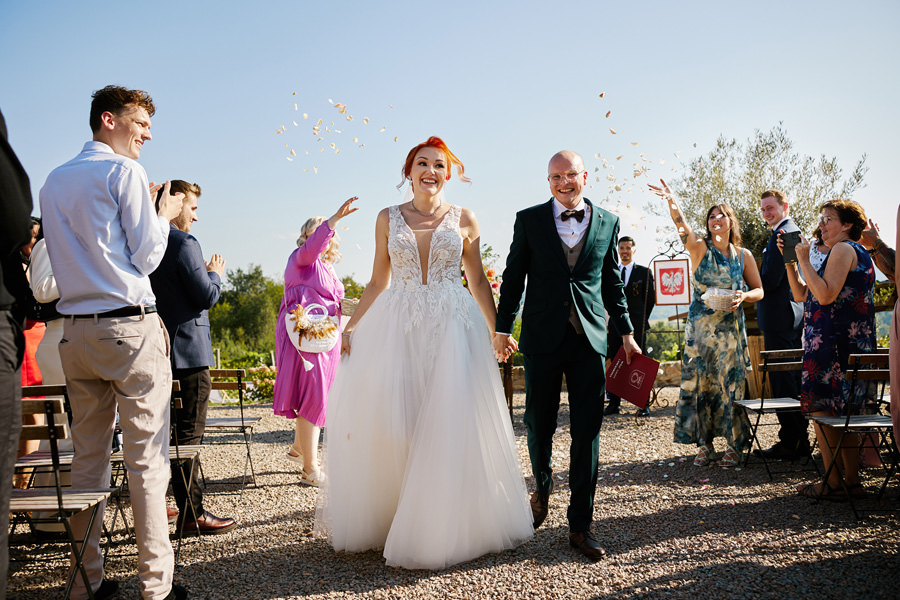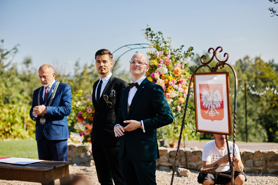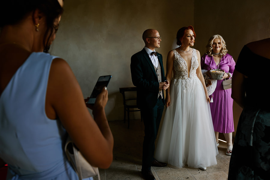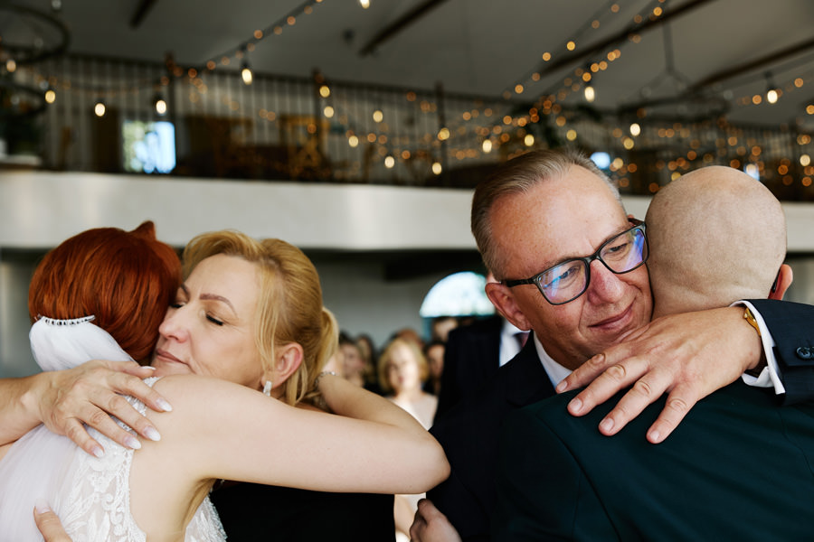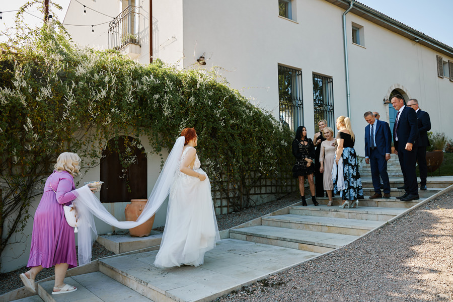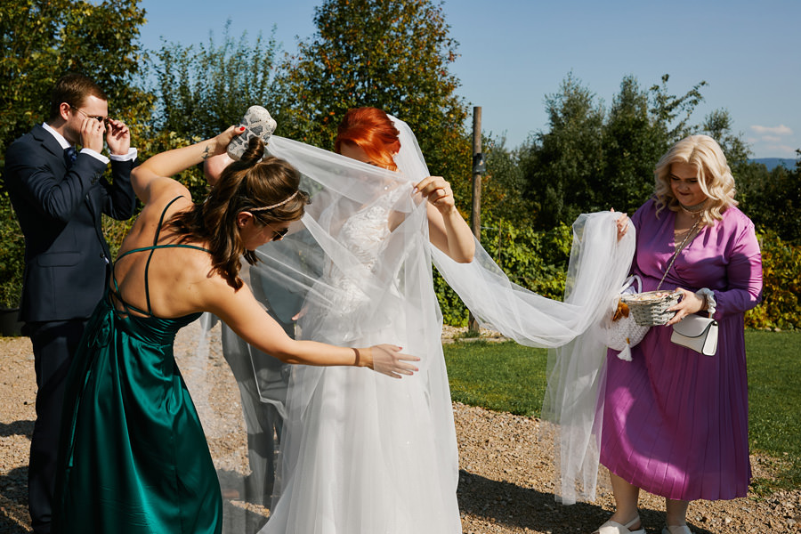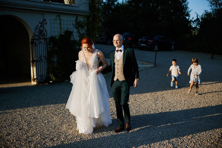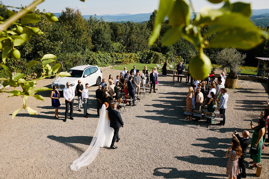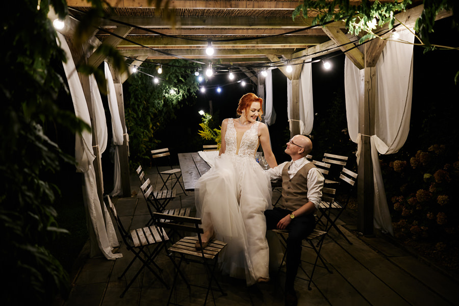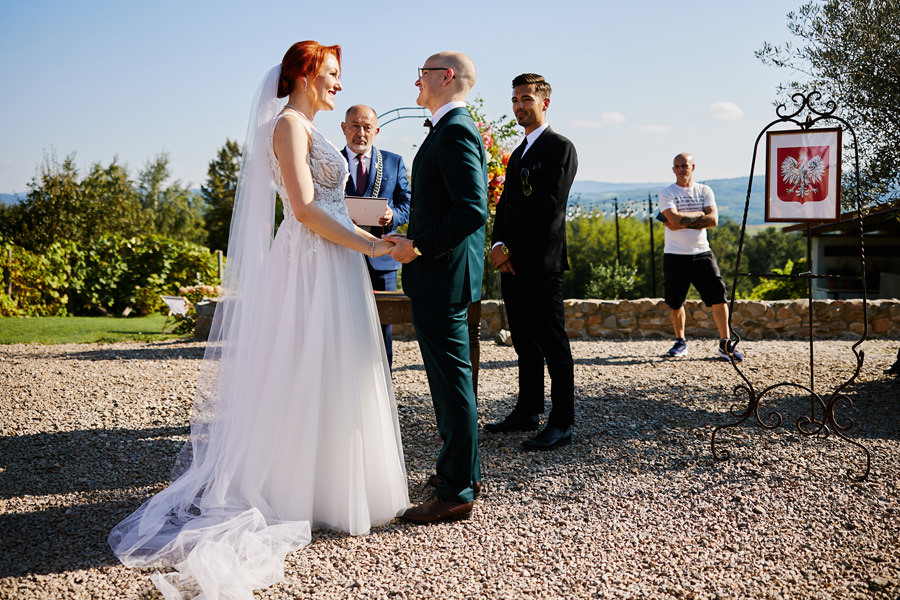 Wizualnie – Villa Love jest z pewnością bardzo blisko toskańskiego klimatu. Kamień, drewno, błękit, wielkie donice z roślinnością o charakterze śródziemnomorskim, do tego żywe kwiaty, bawełniane obrusy, złote sztućce, ogromne okna. To wszystko sprawia, że poczujemy się jak we Włoszech. I jedyny aspekt, którego nie sposób przewidzieć w naszym cudnym kraju, to pogoda. Jak dotąd – mieliśmy sporo szczęścia i w kwestii pogody w Villi Love dominowała raczej „włoskość”, niż „polskość”. Ola i Bas, których mieliśmy okazję fotografować w tym miejscu, zdecydowali, że odbędzie się tutaj też ich ślub. Ślub był cywilny, oczywiście w plenerze. Był to weekend wrześniowy, ale zdecydowanie nas nie oszczędził, jeśli chodzi o temperaturę. Nie wiem, ile mogło być stopni, ale w moim odczuciu grubo ponad 100 :D. Światło – ostre, bardzo kontrastowe, ogólnie rzecz biorąc – niełatwe. W takich sytuacjach zdecydowanie przydaje się wieloletnie doświadczenie w fotografowaniu – niemalże w każdych warunkach. Oraz fakt, że lubimy wyzwania. Zapraszamy Was zatem na ten piękny ślub i wesele w Villi Love, gdzie jest nie tylko pięknie, ale również gościnnie i przepysznie!