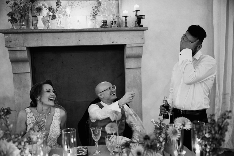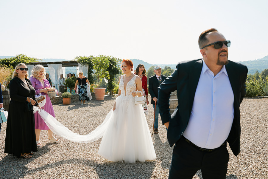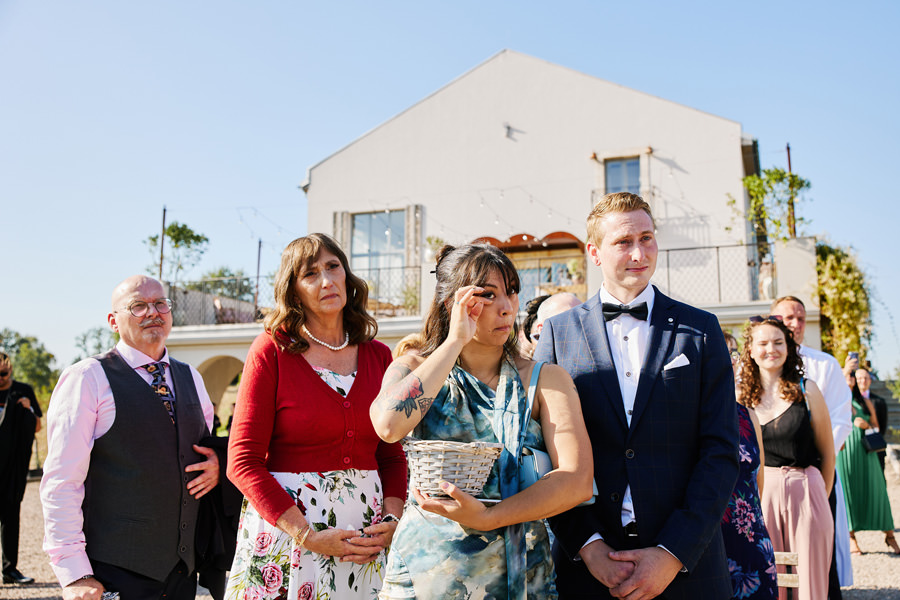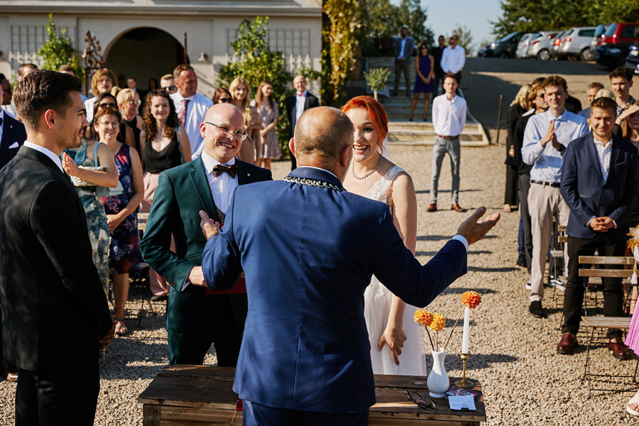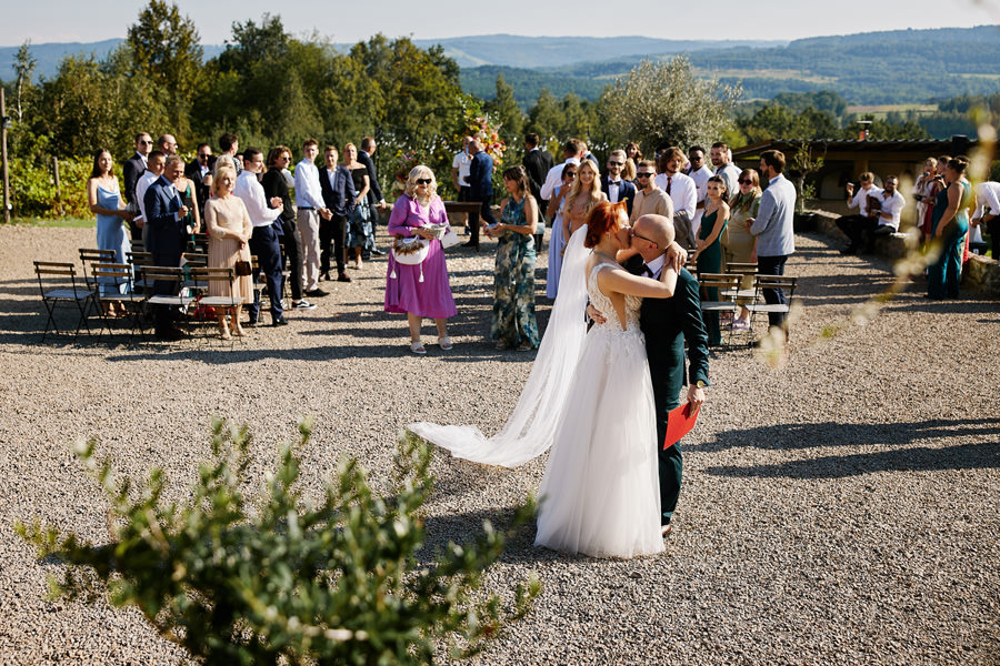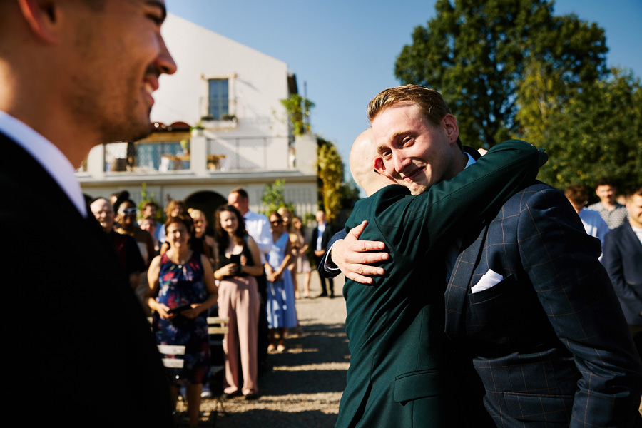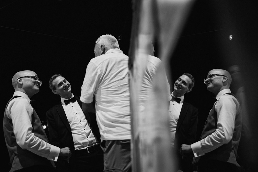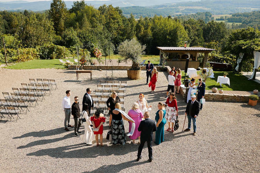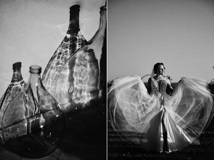 Wizualnie – Villa Love jest z pewnością bardzo blisko toskańskiego klimatu. Kamień, drewno, błękit, wielkie donice z roślinnością o charakterze śródziemnomorskim, do tego żywe kwiaty, bawełniane obrusy, złote sztućce, ogromne okna. To wszystko sprawia, że poczujemy się jak we Włoszech. I jedyny aspekt, którego nie sposób przewidzieć w naszym cudnym kraju, to pogoda. Jak dotąd – mieliśmy sporo szczęścia i w kwestii pogody w Villi Love dominowała raczej „włoskość”, niż „polskość”. Ola i Bas, których mieliśmy okazję fotografować w tym miejscu, zdecydowali, że odbędzie się tutaj też ich ślub. Ślub był cywilny, oczywiście w plenerze. Był to weekend wrześniowy, ale zdecydowanie nas nie oszczędził, jeśli chodzi o temperaturę. Nie wiem, ile mogło być stopni, ale w moim odczuciu grubo ponad 100 :D. Światło – ostre, bardzo kontrastowe, ogólnie rzecz biorąc – niełatwe. W takich sytuacjach zdecydowanie przydaje się wieloletnie doświadczenie w fotografowaniu – niemalże w każdych warunkach. Oraz fakt, że lubimy wyzwania. Zapraszamy Was zatem na ten piękny ślub i wesele w Villi Love, gdzie jest nie tylko pięknie, ale również gościnnie i przepysznie!