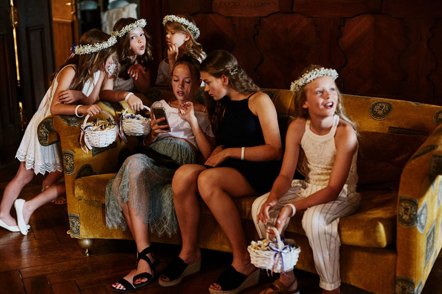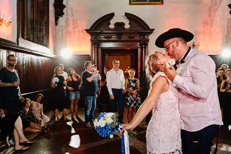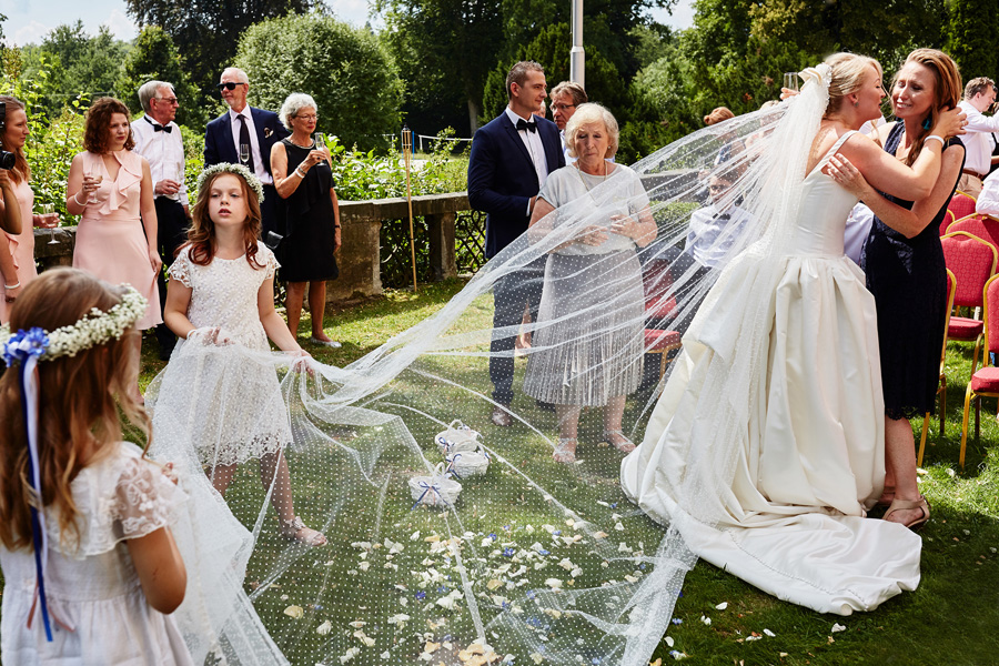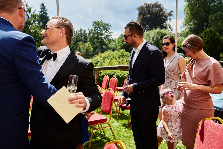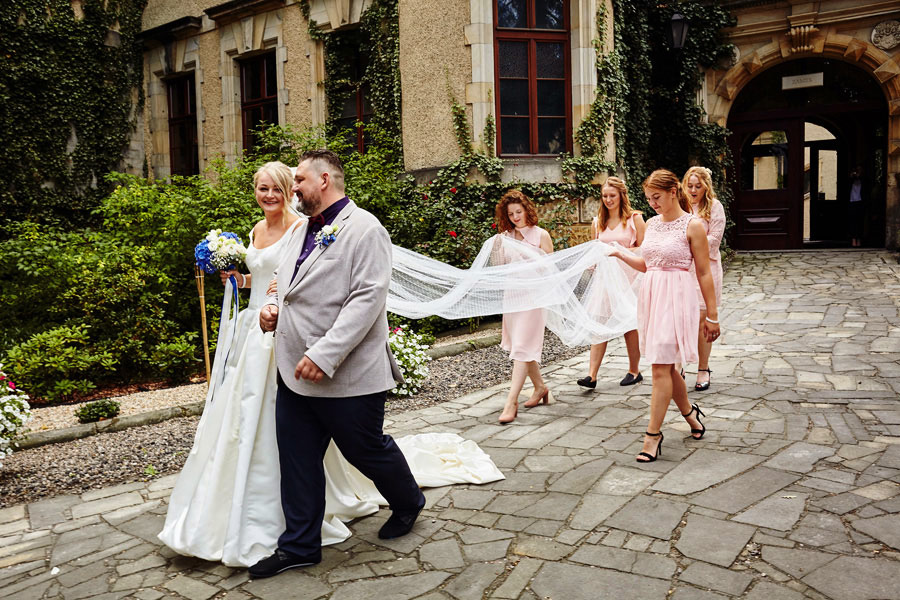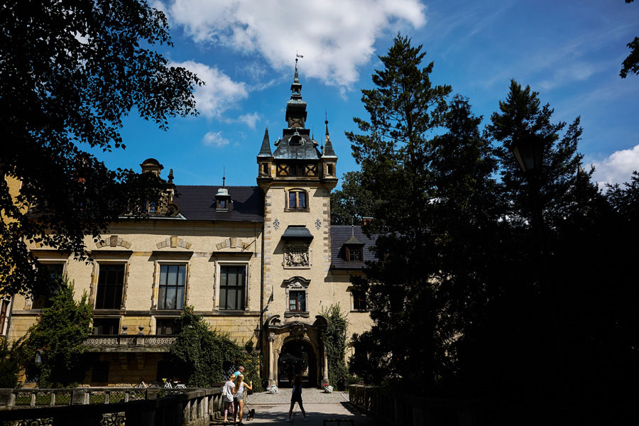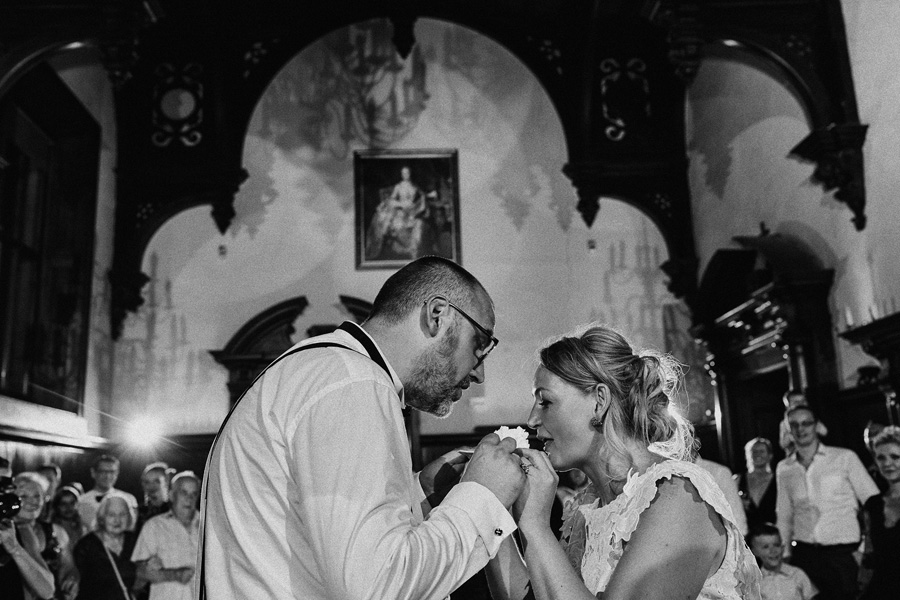 Ale nie możemy oczywiście zapominać o głównym wątku! A ten główny wątek to niezwykła para. Wieloletni związek, dwójka wspaniałych dzieciaków. Na swój ślub wybrali zamek w Kliczkowie – sam zachód Polski, żeby zarówno polscy, jak i holenderscy goście mieli przynajmniej trochę zbliżoną odległość do przebycia. Zamkowe wnętrza na przygotowania ślubne – absolutna bajka. Po pierwsze wielkie i przestronne komnaty, a po drugie absolutnie zjawiskowe światło. Nieco trudniej było ze światłem na plenerowej ceremonii, która odbywała się w środku dnia, w środku lata przy jakimś milionie stopni. Naszym wesołym gościom jednak absolutnie nijak nie przeszkadzało to w pięknym i emocjonalnym przeżywaniu ceremonii 🙂