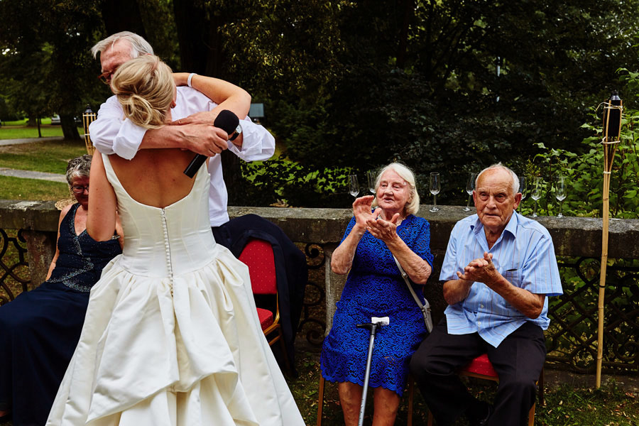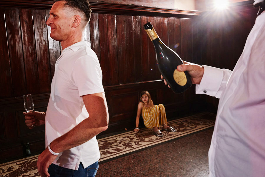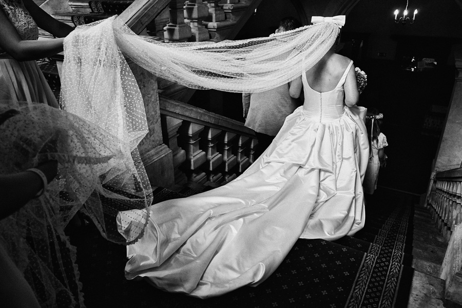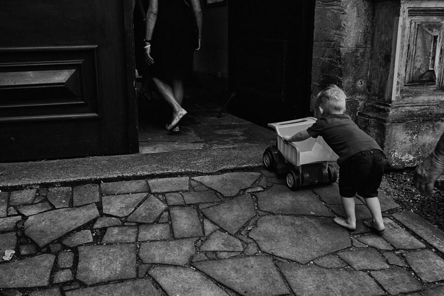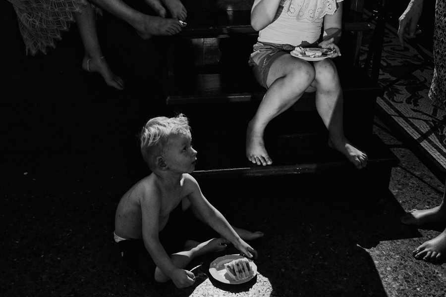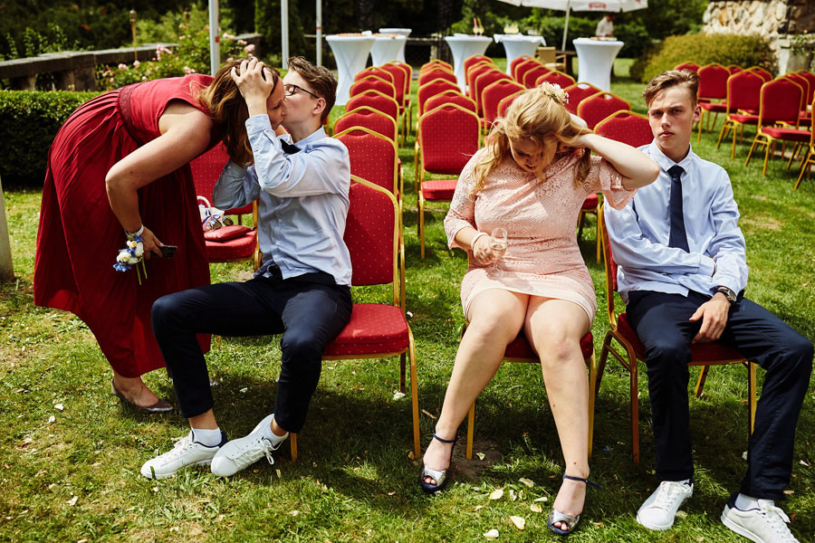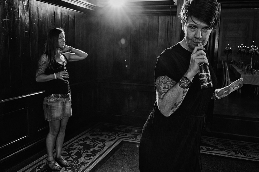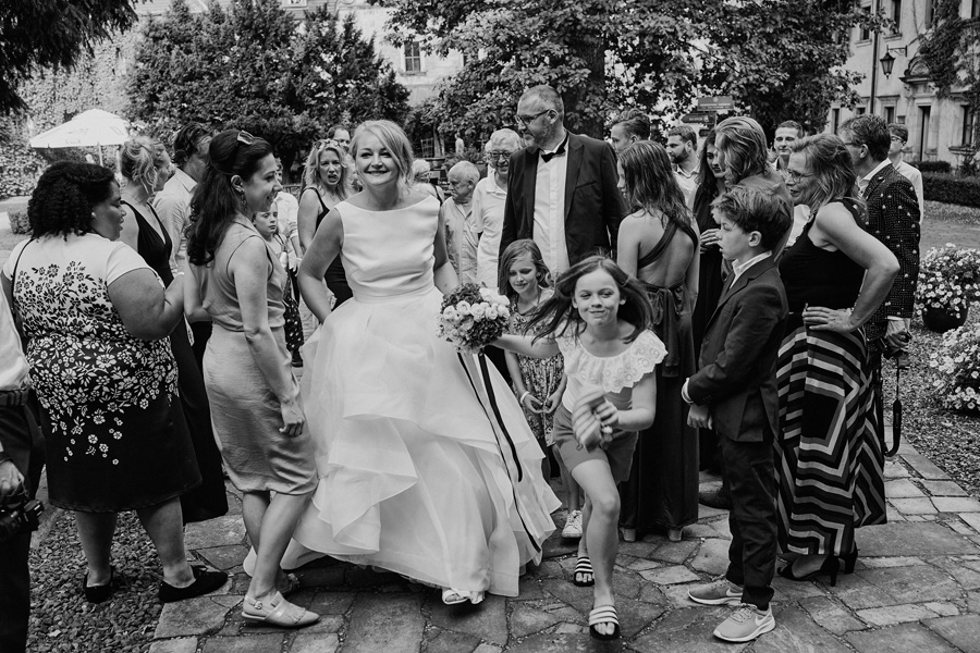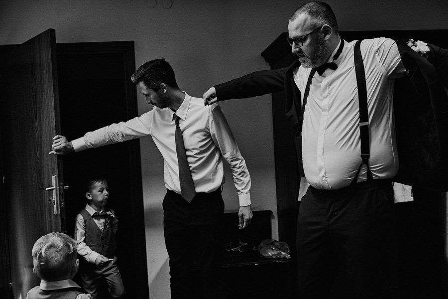 Pamiętam z czasów studiów polonistycznych, że w siedzeniu w czytelni i czytaniu lektur najbardziej fascynowały mnie dopiski na marginesach. Niektóre książki były strasznie stare. Dobrze, że to jeszcze nie były czasy wybujałych alergii, bo na bank wszyscy byśmy umarli. A z tym pisaniem na marginesach – wiem, tak się nie robi. Ale to było jak tajemne listy pisane przez studentów na przestrzeni dziesięcioleci. Wątki (dosłownie) marginalne. Po co o tym piszę, skoro tak naprawdę chcę pokazać zdjęcie? Bo uważam, że te „zapiski na marginesach” działają w fotografii reportażowej bardzo mocno. Pamiątkowe ślubne zdjęcia skupione wokół młodej pary i podporządkowane chronologii to główny wątek. Ale to te marginalne wątki są jak aromatyczna przyprawa – dodają ślubnej pamiątce smaku.
