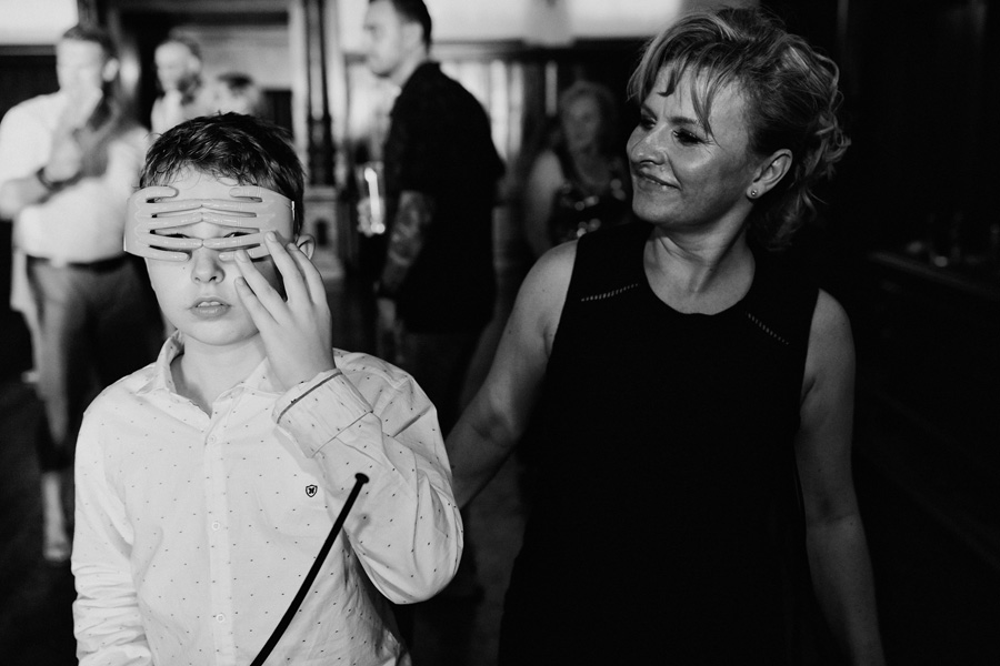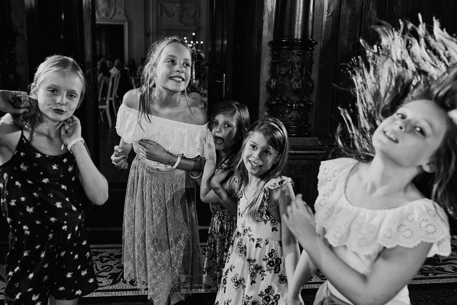 W tym przypadku są to dzieci. Myślę, że nawet bez pisania o tym – samo rzuciłoby się w oczy. Zabawne portrety, rozmaite sytuacje z udziałem dzieci – zdecydowanie dodały tym ślubnym fotografiom smaku. Zdjęcia dzieciaków wyznaczają rytm tej historii. Jej refren, który z całą pewnością prowokuje do uśmiechu. Dwa spośród zdjęć dzieci zostały wyróżnione przez fanpage Sztuki Fotografii Ślubnej.